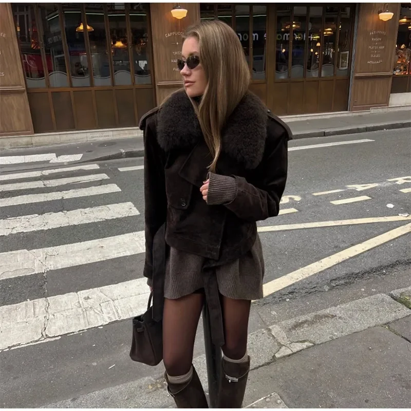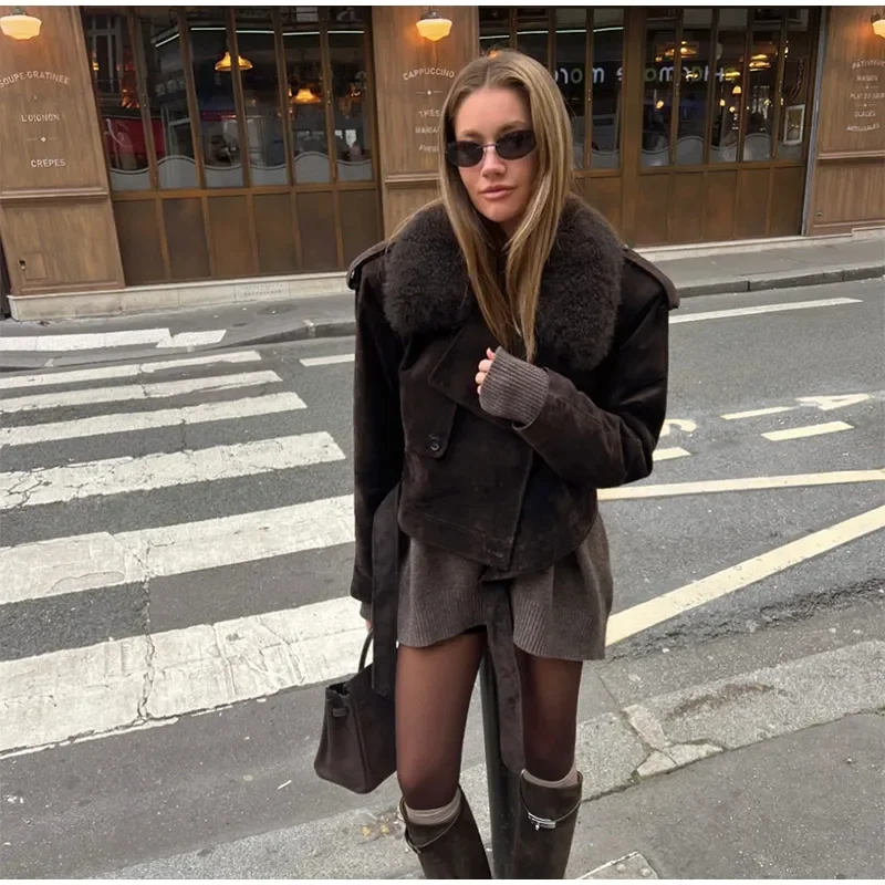 Model Number: Vintage Brown Faux Fur Collar Suede Short Women's Jacket